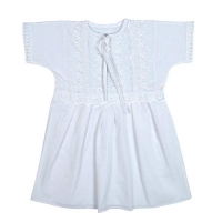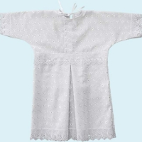 Крестильная рубашка розового цвета отлично подойдет для девочки. Рубашка украшена традиционным орнаментом и атласной ленточкой.